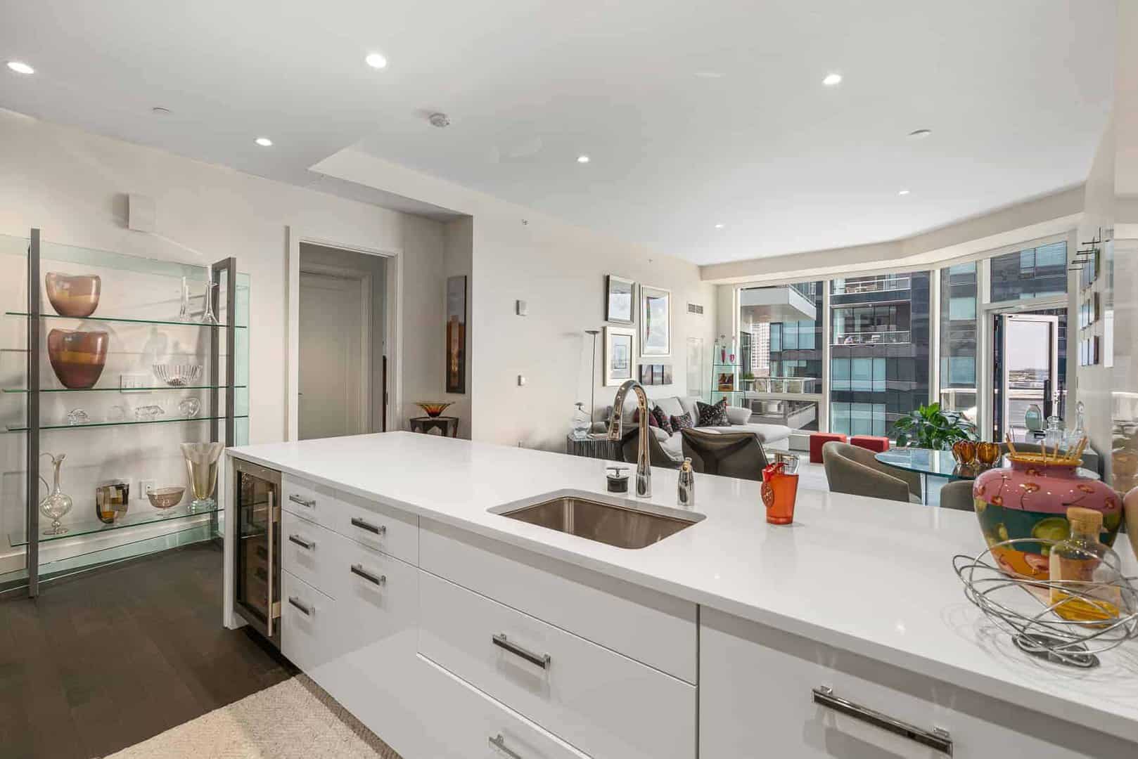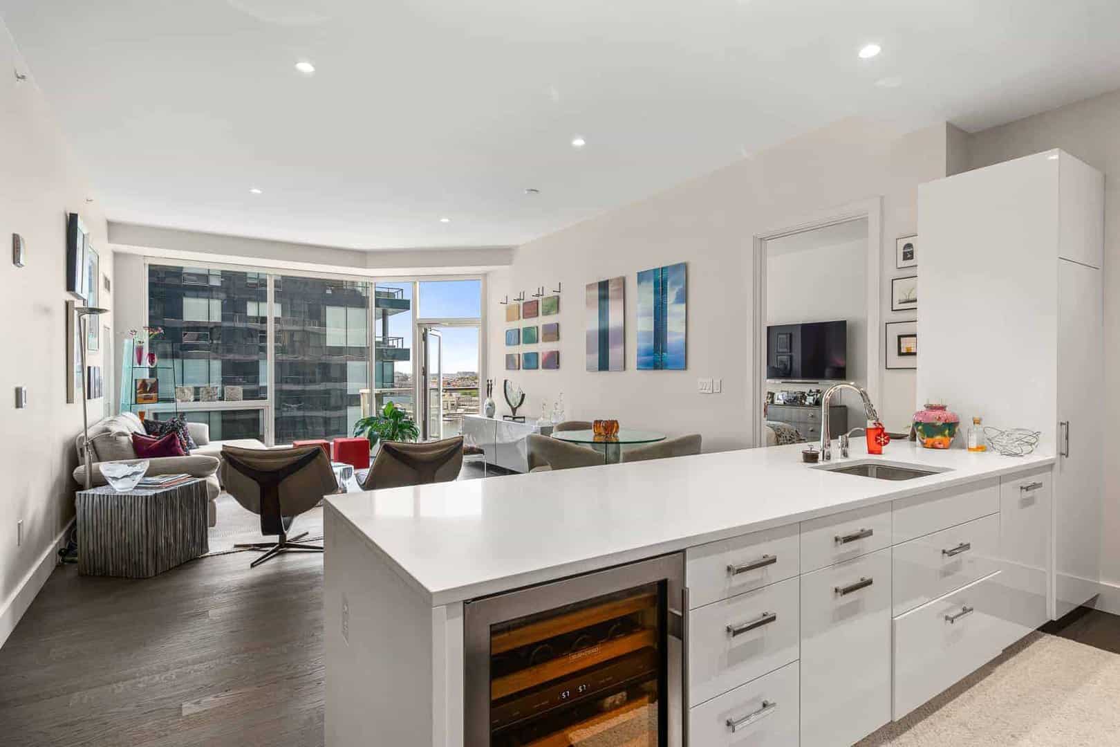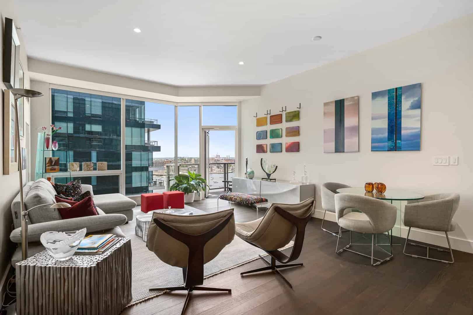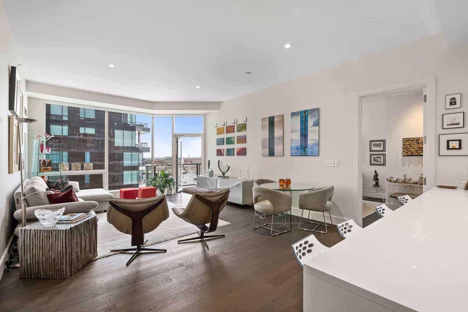 Located at the edge of Fan Pier in the Seaport District, 50 Liberty is a luxury building with 120 condos. Many of the condos at 50 Liberty enjoy direct Harbor views, while some of the penthouses will have both Harbor & City views. Condos at 50 Liberty range from 1 beds with 1,000 sq/ft to 3+ bed penthouses with 3,500 sq/ft and private terraces. Condos feature 10′ ceilings, dark hardwood floors, marble kitchens with cabinetry by Rosario and marble baths with glass showers & soaking tubs. 50 Liberty feature a clubroom overlooking the Harbor, fitness room & private boardroom. 50 Liberty is a doorman building with 24 hour concierge, private Marina and garage parking underneath.